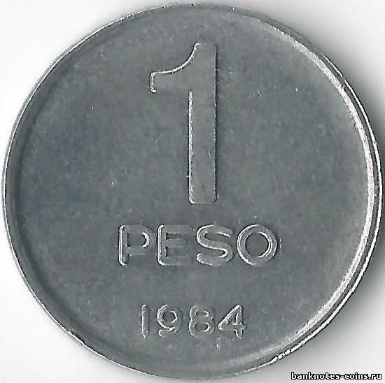 Денежная система, принятая в Аргентине с 1983 по 1985 г., была основана на песо. Монета номиналом 1 песо была отчеканена единственный раз 16 июля 1984 г. Одно аргентинское песо 1983 – 1985 гг. было эквивалентно 10 000 старых песо. Всего через два года произошла его замена на аустраль, появившийся в результате деноминации, при которой 1 000 старых аргентинских песо стала равняться одному аустралю. Аустраль оставался в общении до 1992 г. Свои кратким существованием аргентинское песо было обязано высокой инфляции, охватившей страну в восьмидесятые годы XX в., явившейся в немалой степени следствием поражения Аргентины в Фолклендской войне с Великобританией в 1982 г. Термин «песо» происходит от названия монеты, чеканившейся испанцами, начавшими в XVI в. Заселение центральной и южной Америки. Многие другие страны этого региона и сейчас используют монеты с таким именем.