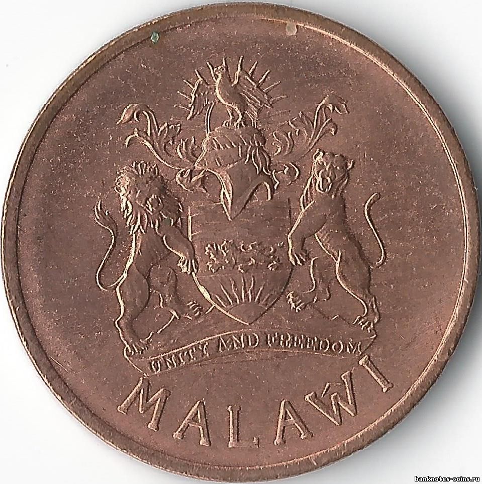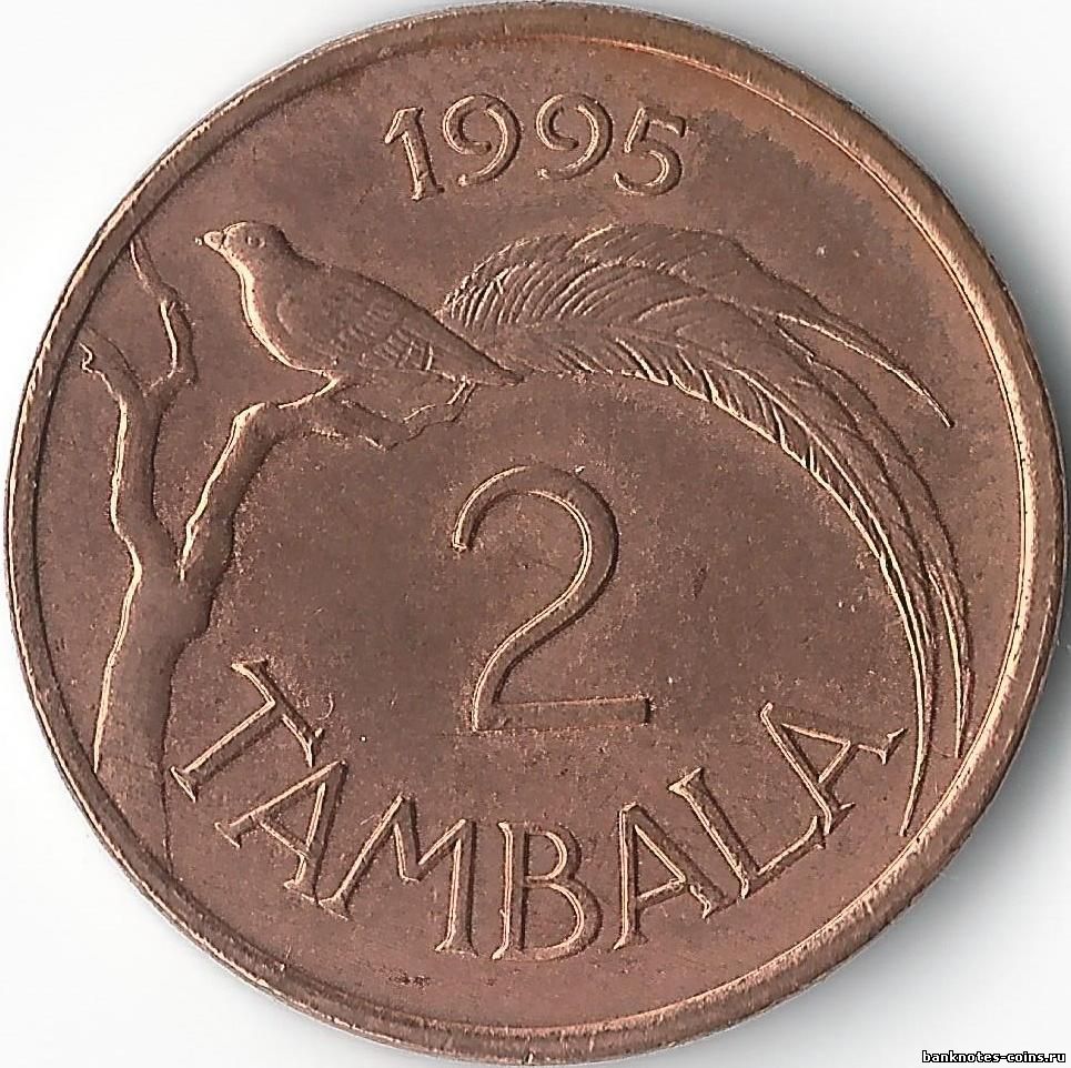 Денежная система Малави основана на кваче. Слово « квача » переводится как « заря , а тамбала – одна сотая часть квачи – означает « петух ». Монета 2 тамбала, представленная на этих страницах, чеканилась Королевским монетным двором Англии только в течение двух лет : в 1995 г. – из бронзового сплава, и в 2003 г. – из стали, покрытой медью. Кроме двух разных сплавов, использовавшихся для чеканки, монеты отличаются также мелкими иконографическими деталями. В эмиссии 2003 г., представленной здесь, национальный герб на аверсе немного большого размера, чем на монете 2 тамбала 1995 г. выпуска, а девиз « Единство и свобода »на ней стал рельефным. На реверсе монеты 2003 г. изображены литеры PV, которых нет в предыдущей эмиссии, являющиеся инициалами дизайнера монеты. Хотя официально монета до сих пор находится в обращении, фактически она демонетизирована, поскольку ее покупательная способность до нуля.